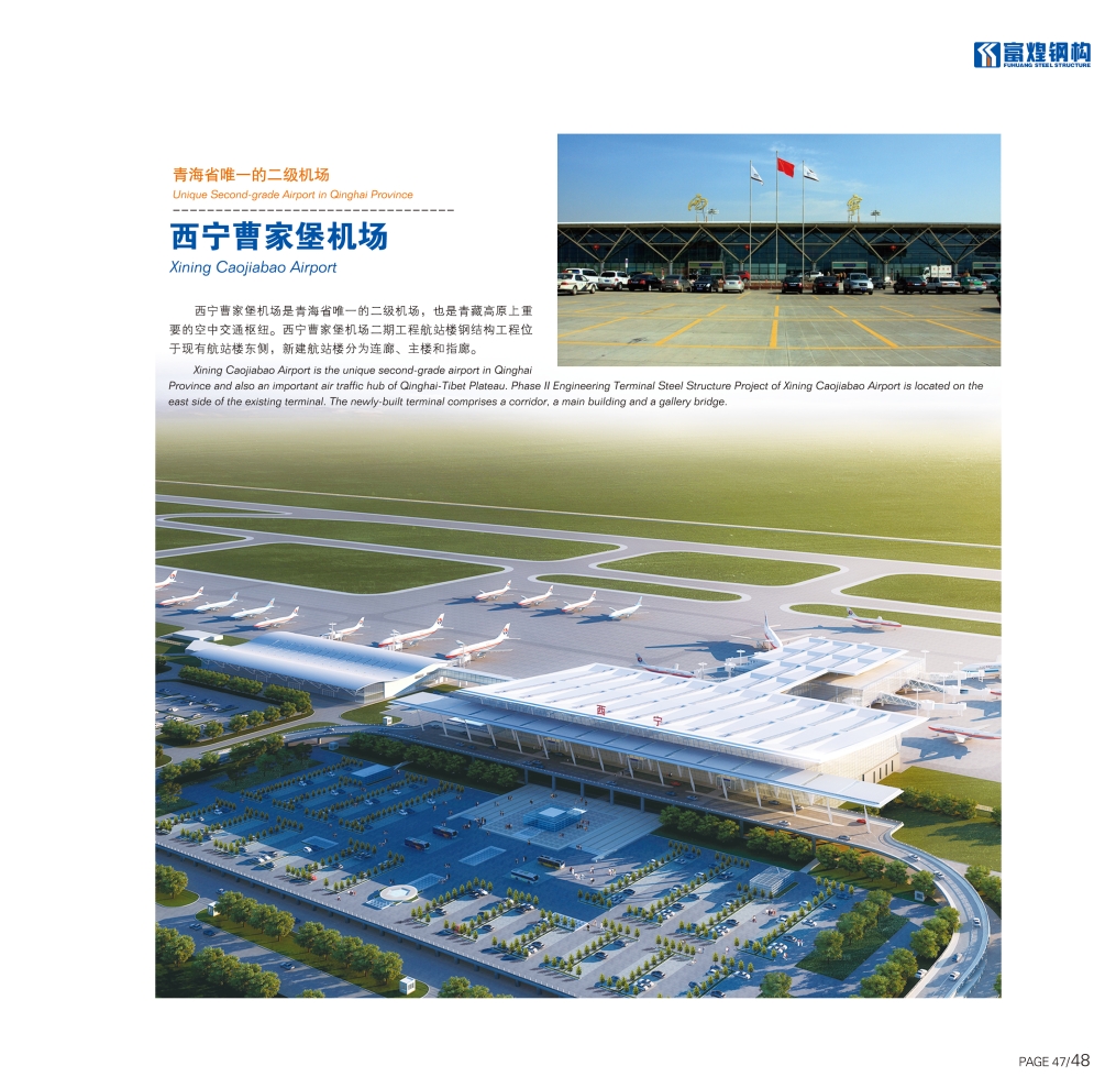 西寧曹家堡機場是青海省唯一的二級機場,也是青藏高原上重要的空中交通樞紐。西寧曹家堡機場二期工程航站樓鋼結構工程位于現有的航站樓東側,新建站樓分為連廓、主樓和指廓。